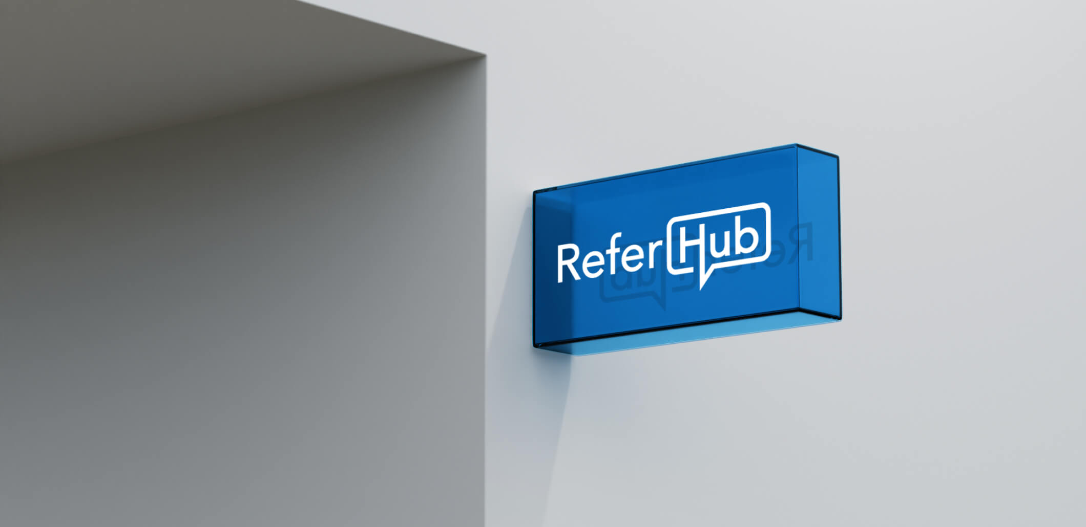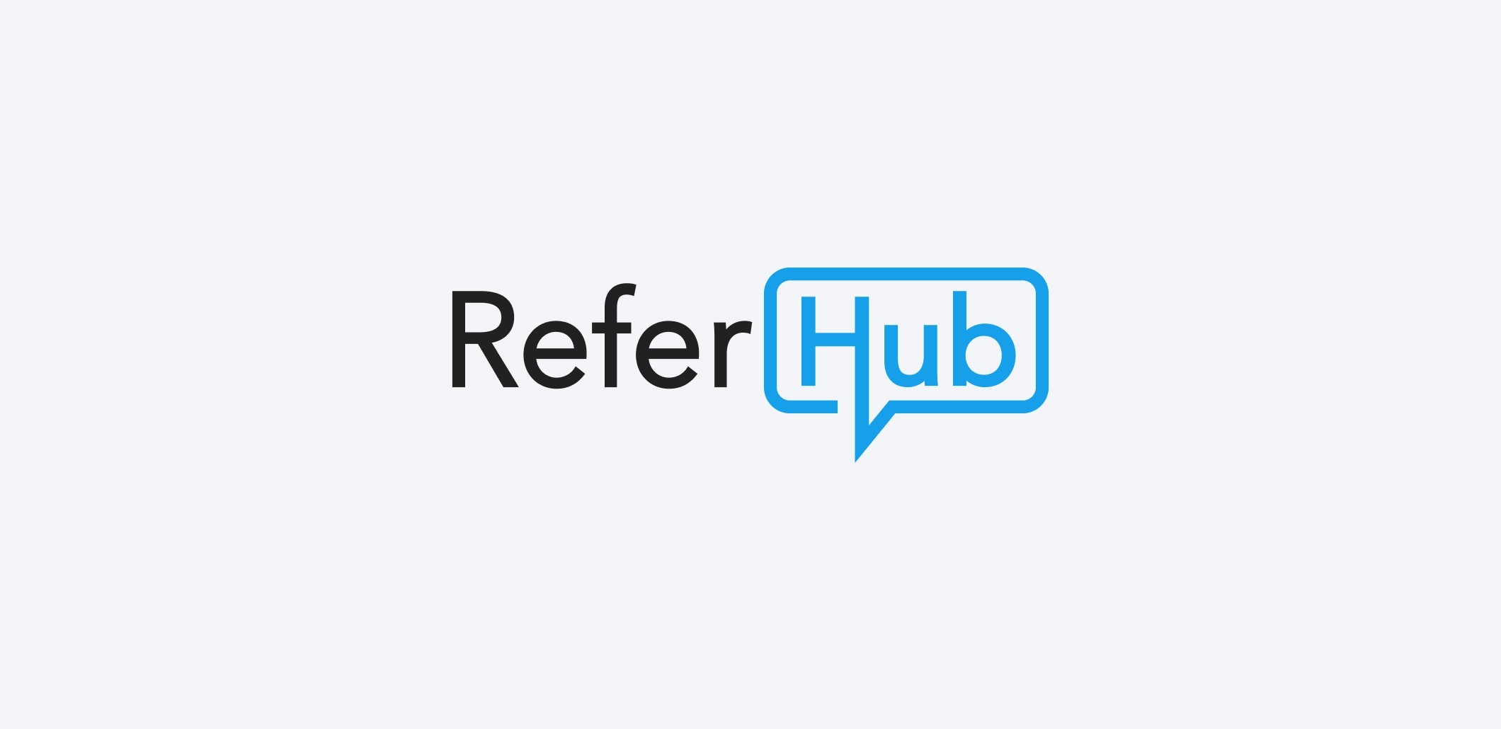 The ReferHub logo reflects clarity, connection, and digital-first thinking. The bold “Refer” in black conveys professionalism and trust, while “Hub” sits within a stylized speech bubble — a visual nod to communication and collaboration.