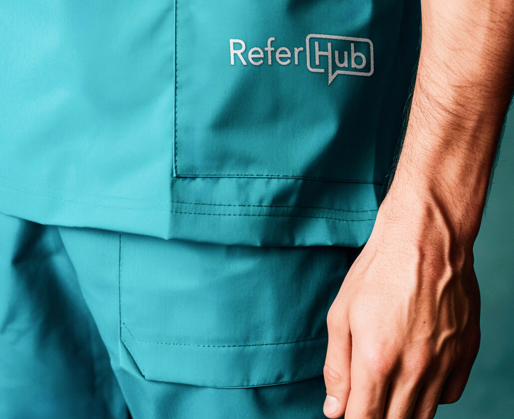 The visual identity of ReferHub combines clinical clarity with digital warmth. A clean, modern color palette — grounded in white, black, and bright blue — reinforces trust, technology, and approachability.