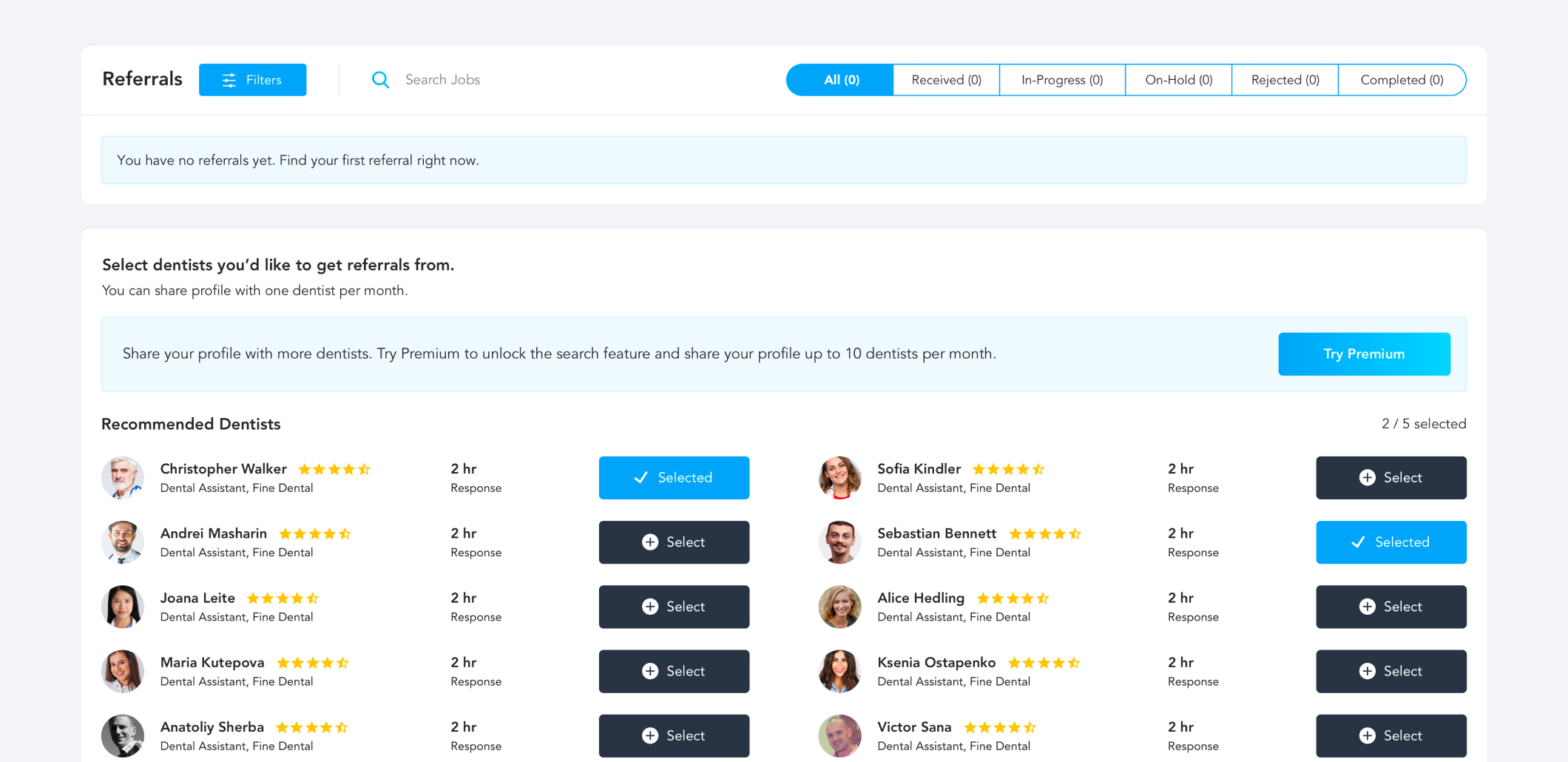 We designed a clear and intuitive dashboard tailored to the needs of dental specialists. Every element — from referral tracking to appointment scheduling — is built to reduce friction and save time. The interface prioritizes usability, HIPAA compliance, and seamless collaboration with general dentists, making complex workflows feel effortless.